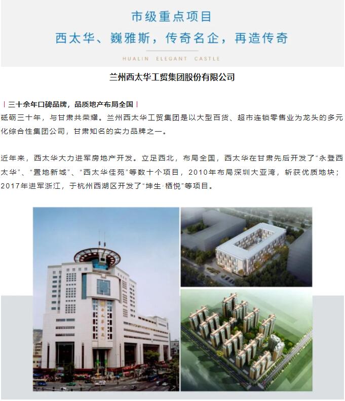 2016年7月7日與西太華工貿集團合作成立甘肅樺琳房地產(chǎn)開發(fā)有限公司開發(fā)樺琳雅廷地產(chǎn)項目