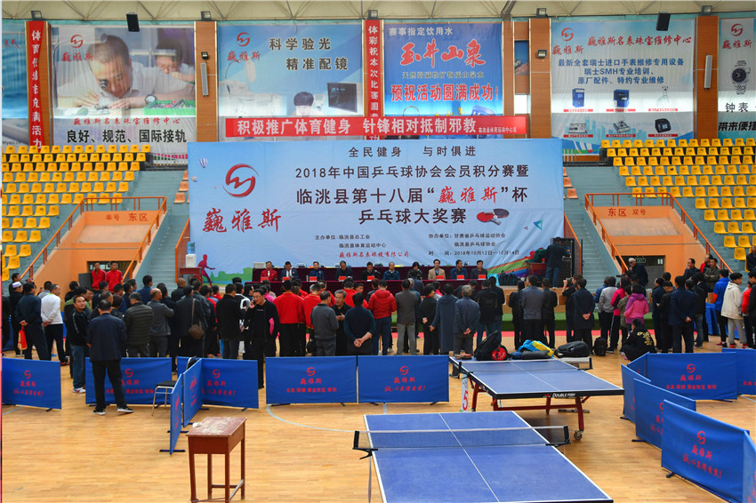 2018年10月12日上午,由臨洮縣總工會(huì)、臨洮縣體育運(yùn)動(dòng)中心、巍雅斯名表眼鏡有限公司主辦,甘肅省乒乓球運(yùn)動(dòng)協(xié)會(huì)、臨洮縣乒乓球協(xié)會(huì)協(xié)辦的2018年中國乒乒乓球協(xié)會(huì)會(huì)員積分賽暨臨洮縣第十八屆“巍雅斯”杯乒乓球大獎(jiǎng)賽在著名的花卉之鄉(xiāng)--臨洮縣拉開帷幕。