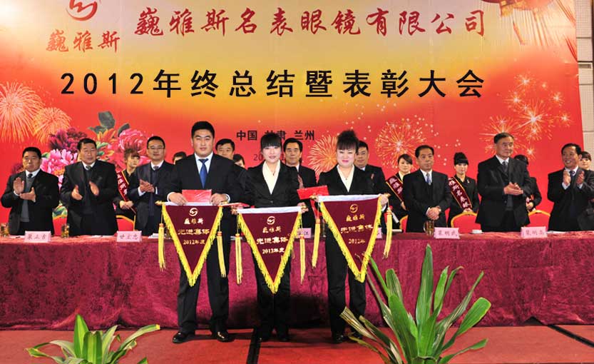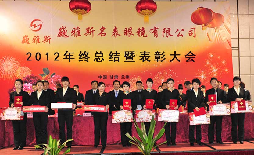 2013年1月6日下午,巍雅斯名表眼鏡有限公司2012年度年終總結暨表彰大會在蘭州隆重舉行。來自臨洮公司、蘭州公司、銀川公司、西安公司、西寧分部、拉薩分部及各個地市的員工代表及管理人員總計320余人參加會議。